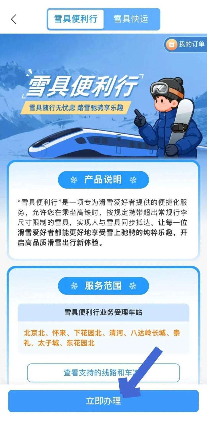 值得隆重的是,“雪具便利行”就业于开车前10分钟住手受理,开车前1小时可取消订单并全额退款。因每趟动车组列车雪具装载才略有限,游客如接受此项就业,提议提前经营行程、尽早预约。