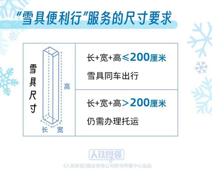 另外,由于高铁列车车内空间礼貌,关于长、宽、高之和跳跃200厘米的雪具,需办理托运。