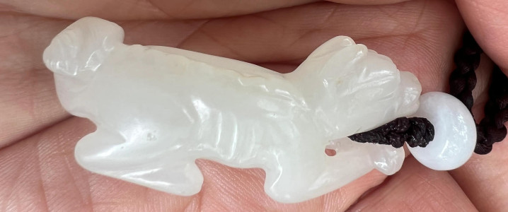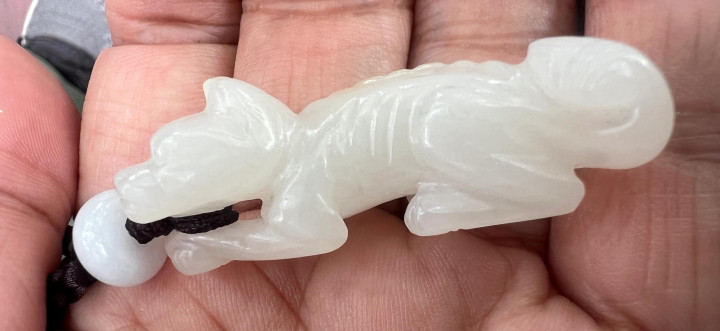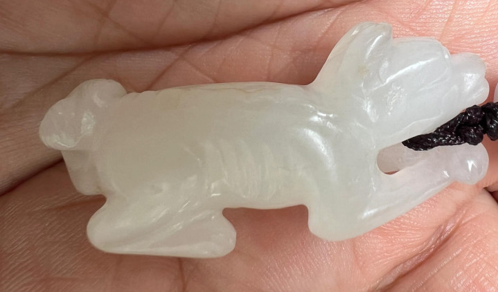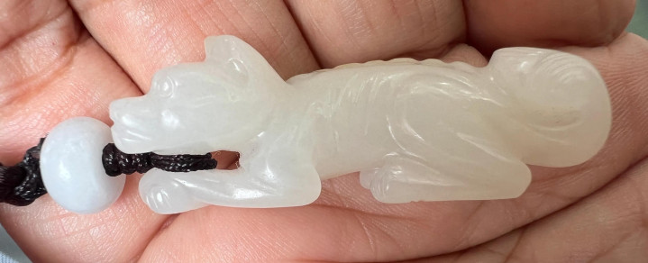 这枚玉雕挂件呈现出以下与“明代羊脂白玉天狗”相符的特征:------