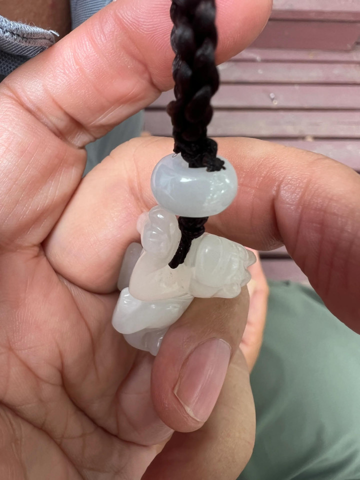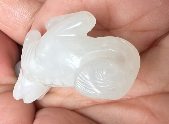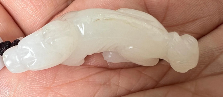 ◦ 玉质呈现乳白、淡青白色,名义温润风雅,带有柔软色泽,局部可见自然纹理,适应优质和田玉(尤其是羊脂白玉)的温润、油性特质。明代羊脂白玉虽恐怕如当代门径般极致纯白,但质感莹润、略带脂粉感是典型特征。