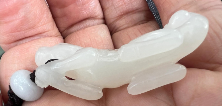 总而言之,此玉雕适应明代羊脂白玉天狗的典型特征,正如《咏明代天狗玉雕》所云:“昆山凝脂琢灵兽,俯仰乾坤守玉珂。目注金珠窥世相,爪蜷云尾卧银河。含光夜映蟾宫冷,衔瑞时清桂影跎。千载温润存古意,犹听风露诵长歌。”(注:作品依图片推行赋咏明代羊脂白玉天狗玉雕。首联以昆仑好意思玉起兴,状其莹润如凝脂;颔联描画天狗衔珠蜷卧之态,喻其通灵守正;颈联化用“天狗食月”典故,反写其衔瑞护佑之祥;尾联赞玉雕经年温润,古意悠长。全诗紧扣玉质、花样、文化内涵,融传说于方寸之间。)