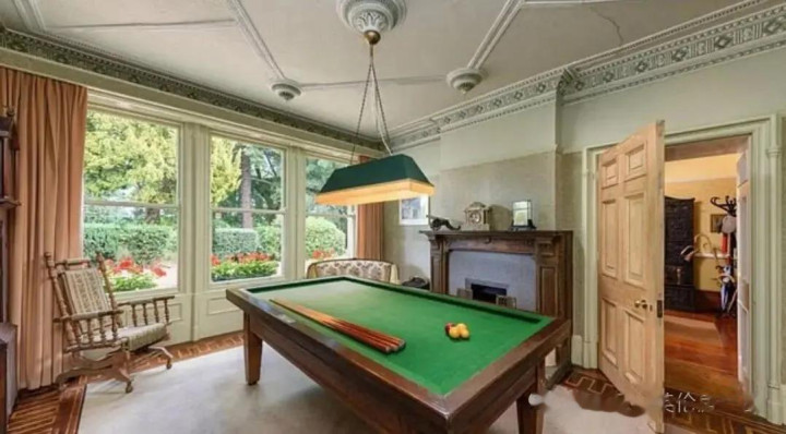其本性包括一个台球室、一个配有枝形吊灯的豪华客厅、一个带有秀丽天窗的阳光房,以及周围5英亩(约2公顷)的地盘。