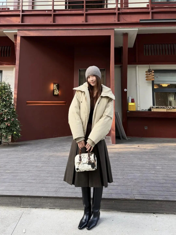半裙搭配 #长靴 #减龄气质 #秋冬爆火