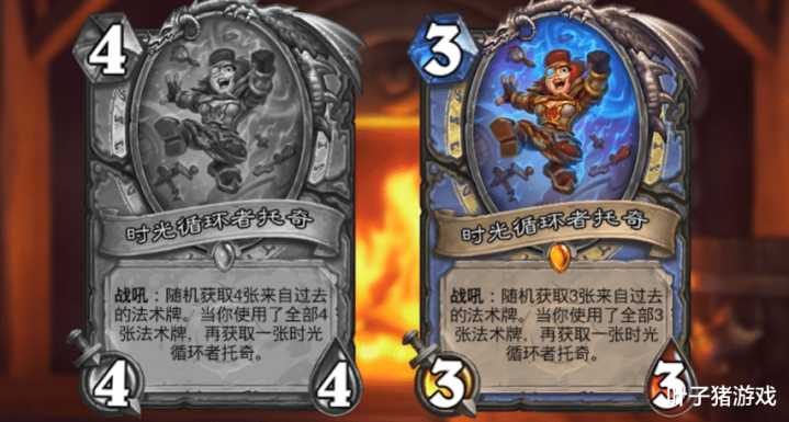 接下来是托奇这张卡,身板从4/4/4变为3/3/3,立地获取3张牌,同期BUG也被建造了,总体看是加强了的,毕竟3用度起来就比4费愈加丝滑。但不得不说的是,托奇的90%强度全靠两张溜冰,跟狂野的龟法相通硬拖,若是托奇没溜冰大致率被别东谈主一脚踢死,现在全网号召预备师干脆把它删了吧。