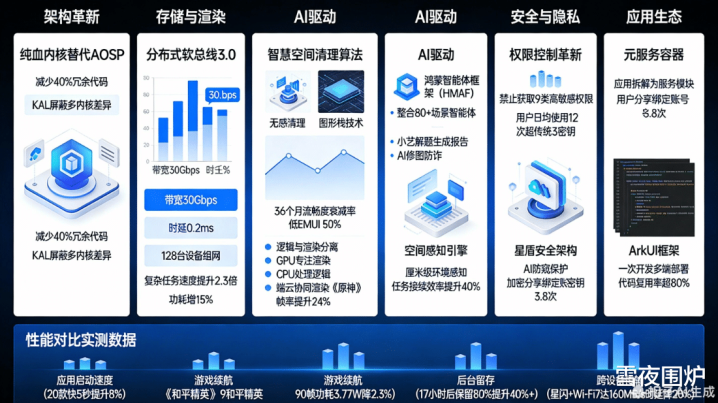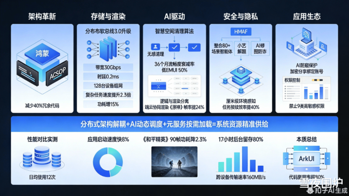 精简骨子追忆:HarmonyOS 6.0 的"瘦身"并非单纯功能编著,而是通过 "散布式架构解耦+AI 动态休养+元做事按需加载" 的三重时刻范式,竣事系统资源的精确供摄取冗余浮滥根治。