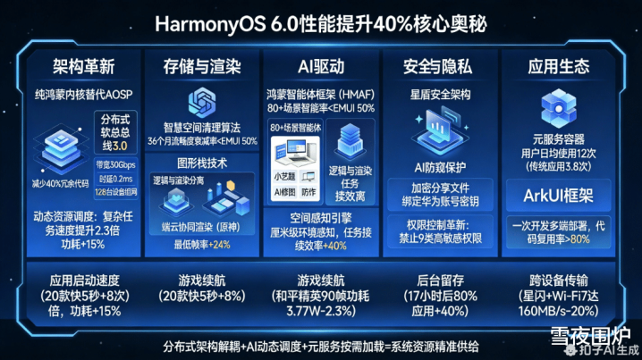 发布日期:2025-12-17 14:18 点击次数:148HarmonyOS 6.0 比较 EMUI 竣事性能提高 40% 的中枢精巧,在于其从系统架构、资源休养、AI 协同到开导风物的全面纠正。以下是要津时刻的深度默契: